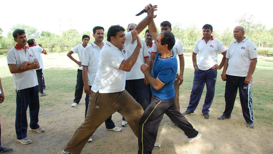Training with Delhi police to teach practical defence & offence in the shortest possible time or disarming an axe, knife or a pistol during the initial hours of crisis.